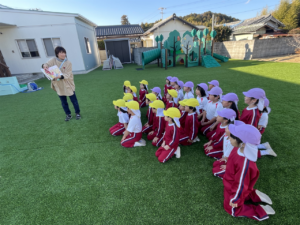 季節のうた「焼いもグーチーパー🍠」を歌い🎤じゃんけんで大盛り上がりしました![]()