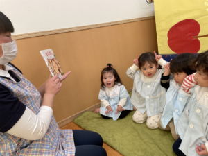先生に読み聞かせをしてもらったり、自分でページをめくって楽しんだりと