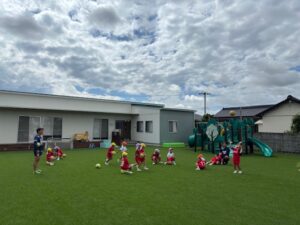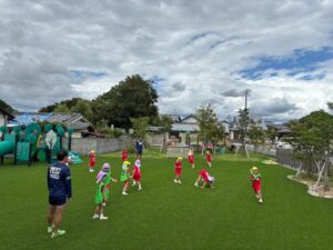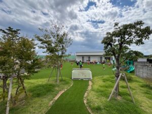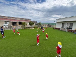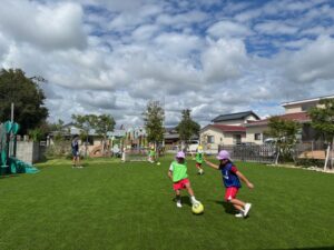子ども達は、フカフカの人工芝の上をおもいっきり走り回り、