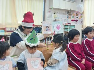 お誕生日会の後には、先生がハンドベルで『ジングルベル』を演奏してくれました![]()