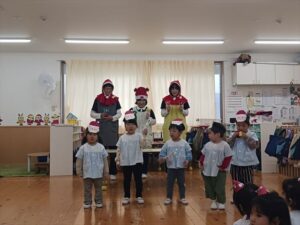 今日はえみの保育園と合同で、クリスマス会と12月のお誕生日会を楽しみました![]()
