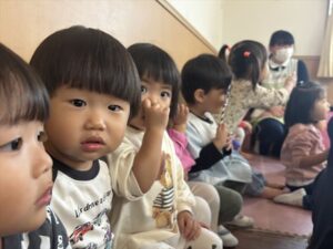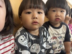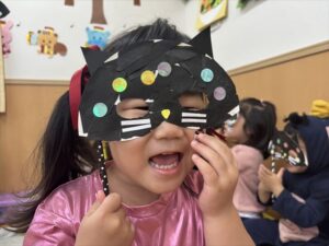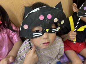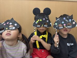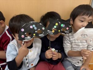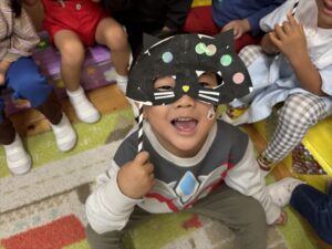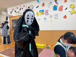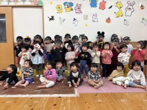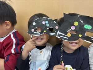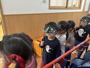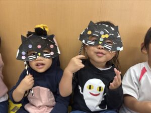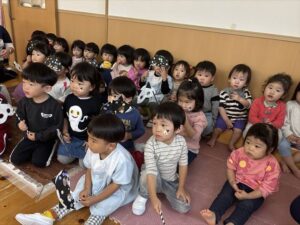 仮装をしたお友達で賑やかな雰囲気だった朝。子ども達もワクワク、少しドキドキな様子でした。