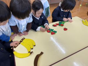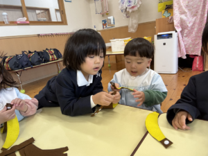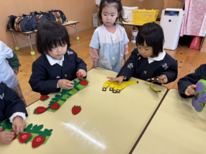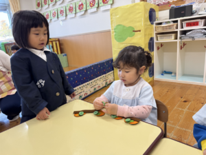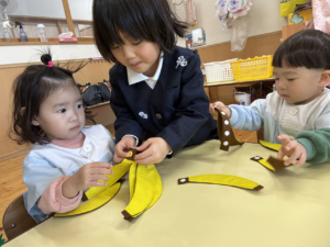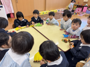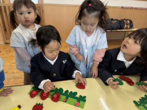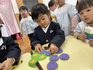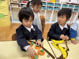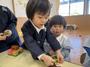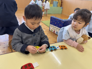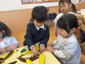 一緒にあそんだよ😊✨(花組🌼星組⭐) 一緒にあそんだよ😊✨(花組🌼星組⭐) 最近、スモックのボタンやファスナーの開け閉めに興味を持ち始め、自分でやる姿も見られる花組さんです🌼 そして、新しいおもちゃが仲間入りしました ボタンの付け外しや、パッチン、マジックテープ剥がしなどいろんなものが ですが、「やって」「できない」という声が花組さんから聞こえてくる中、星組のお兄さん、お姉さんが「こうだよ」「やっちゃう」と教えてくれました 教えてくれてありがとうまた遊ぼうね 2026年1月9日 : 1歳児クラス3歳児クラス