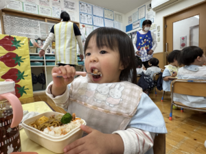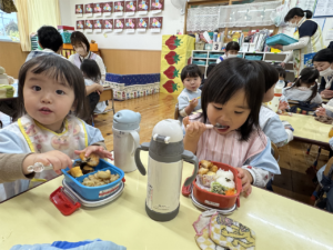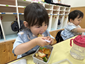 たくさん遊んだ後は、楽しみにしていたお弁当の時間です