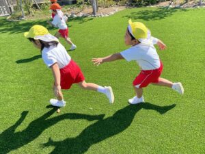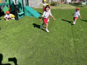 元気に外遊び🌞(月組) 元気に外遊び🌞(月組) 今日は学研の授業がありました✍⭐ 1時間の授業を頑張った後は、お外で思い切り身体を動かして楽しみました 鬼ごっこやかくれんぼ、色水遊びや種集めなど、思い思いに楽しみました ふわふわの芝が気持ち良いねそうだ!一本橋やってみる?と 一本橋に挑戦 見事、大成功 進級に期待を持ち、張り切って過ごしています 2025年10月23日 : 4歳児クラス