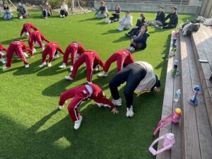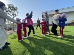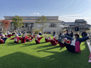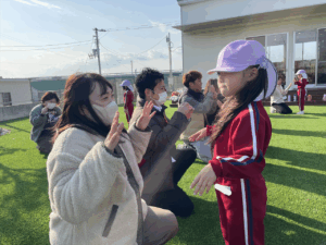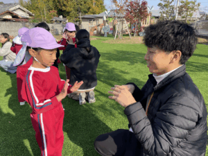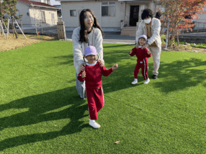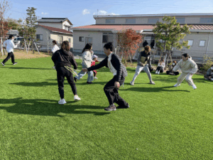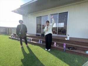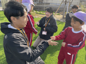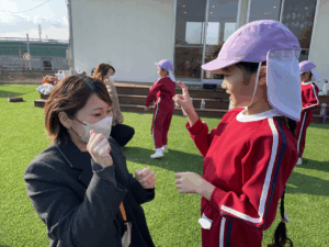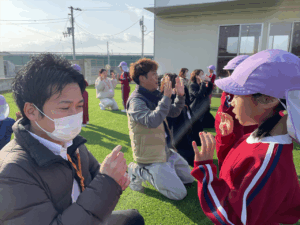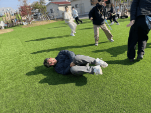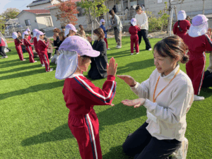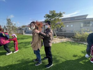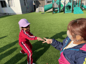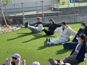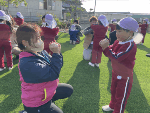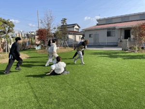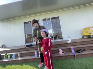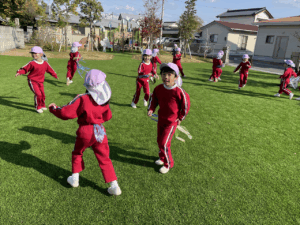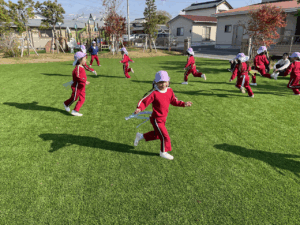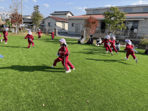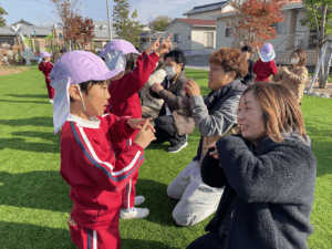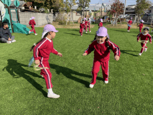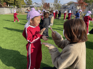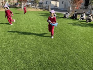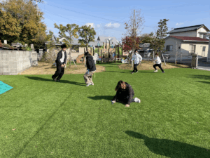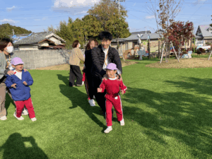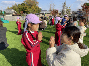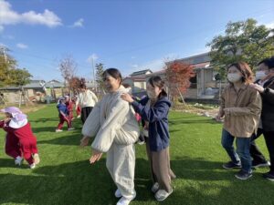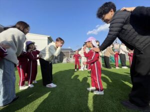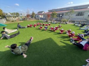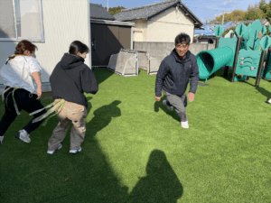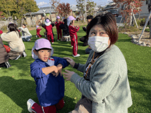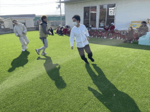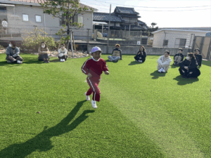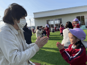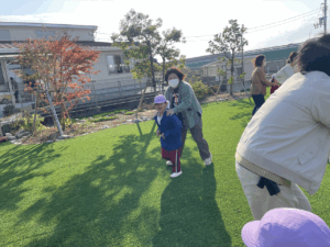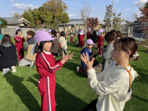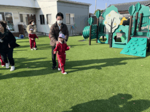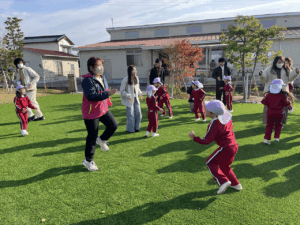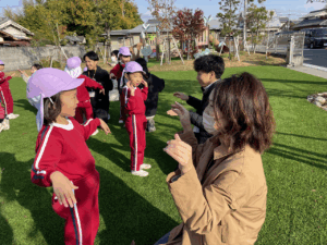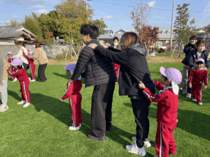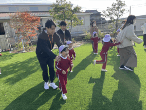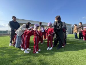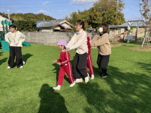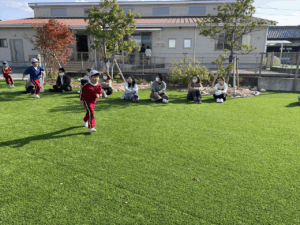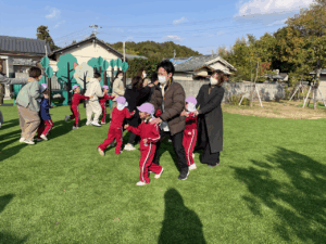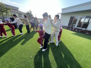 「お外で体動かして楽しもう」と保護者様も一緒に集団ゲームを楽しみました