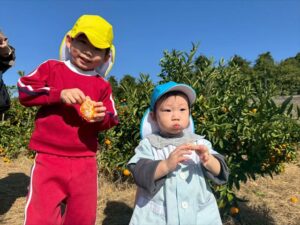みんなのみかんを頬張るお顔や,お友だちと楽しく遊ぶ笑顔がたくさん見られました😆✨