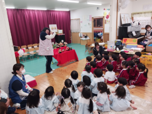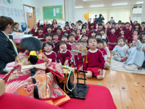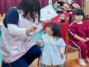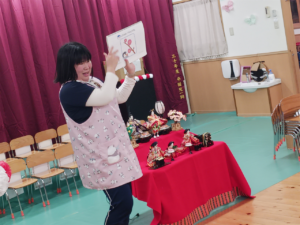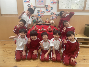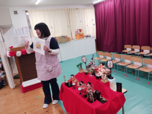 他にも「ひな祭り」の歌に出てくる『三人官女』『五人囃子』が何をしているのか、菱餅の意味などお話を聞いてひな祭りに詳しくなりました!🥰💕